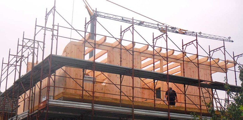 Ancora una volta, l’esigenza di non gravare con pesi eccessivi sulla costruzione sottostante esistente ha imposto l’opzione della costruzione in legno.